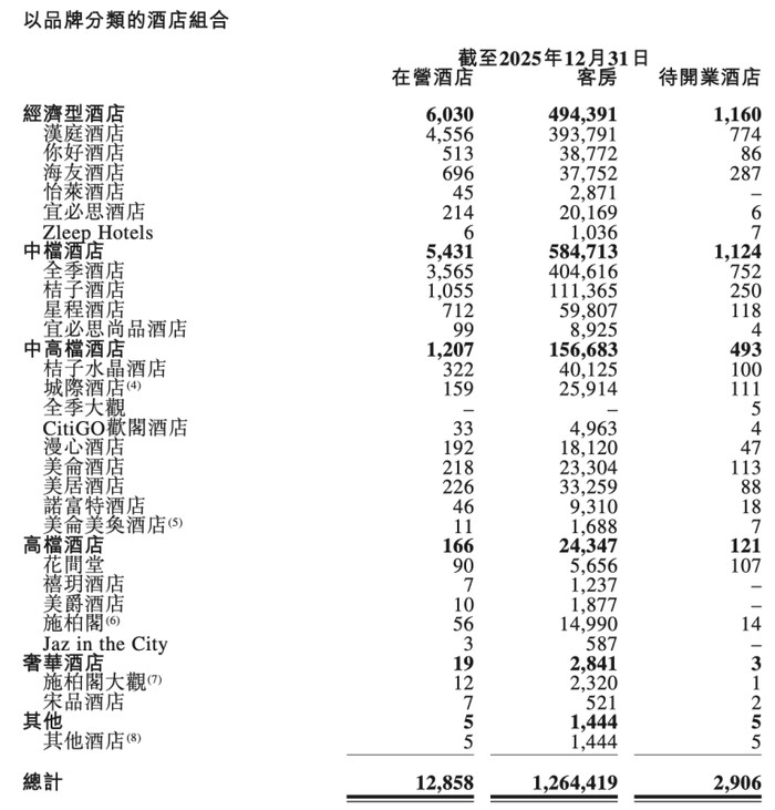 根据财报,截至去年末,全季大观品牌已有5家门店待开业。此外,华住集团的高档、奢华酒店的数量分别为166家和19家,待开业酒店为121家和3家。