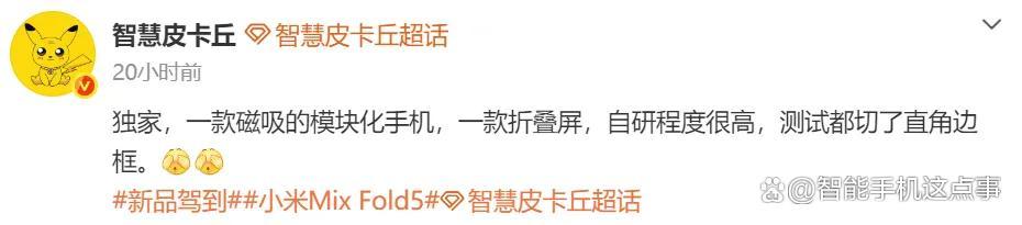 因为近期有博主直接把小米下半年两款旗舰的底裤扒干净了,分别是一款磁吸模块化手机,一款折叠屏新机,并且自研程度拉满,测试都切了直角边框。